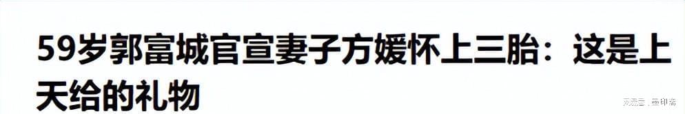 参考信息:百科——郭富城、方媛搜狐娱乐——期待三宝到来!方媛透露三胎预产期,还有不到一个月九派新闻——59岁郭富城官宣妻子方媛怀上三胎:这是上天给的礼物